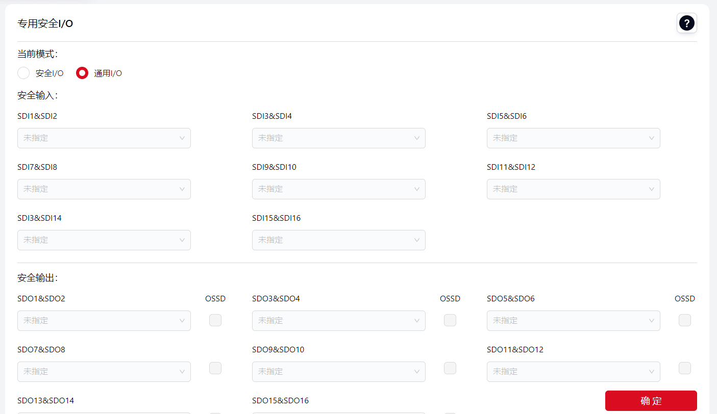 - 若当前配置组的IO存在被其他板块占用时,则弹窗提示“检测到IO被占用,无法配置,请检查相关IO是否配置其他功能”,并且下拉框选项恢复为原设定值;