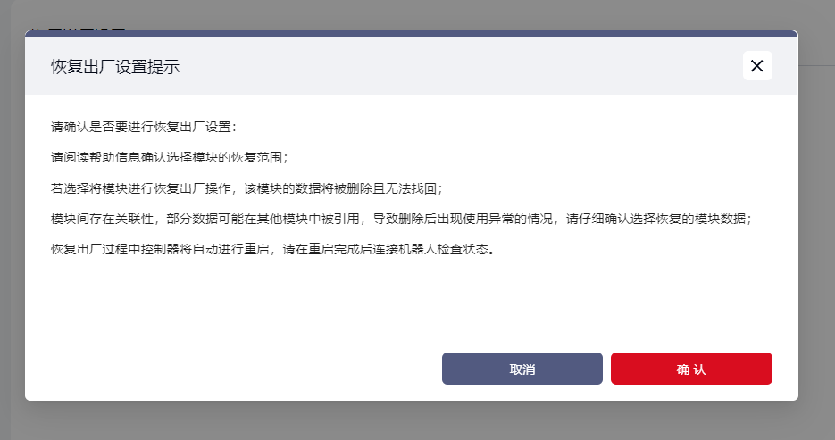 - 关节限位:恢复当前机型本体的关节限位为默认值