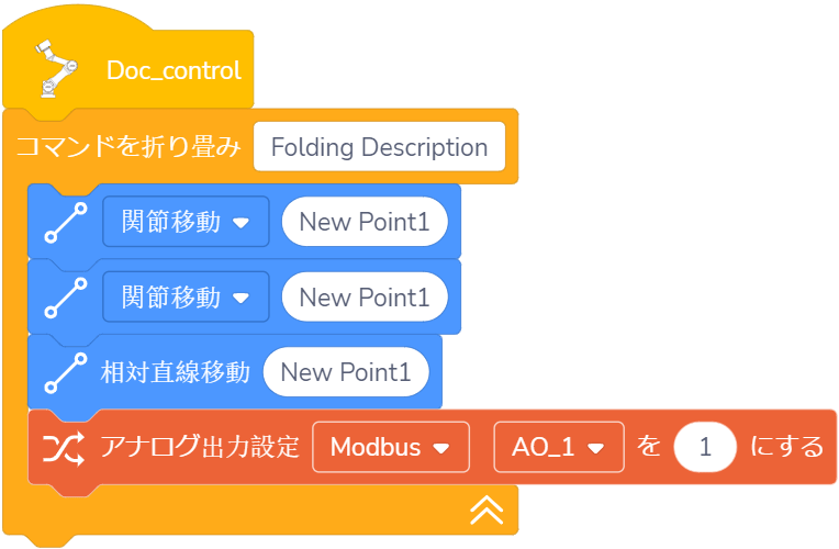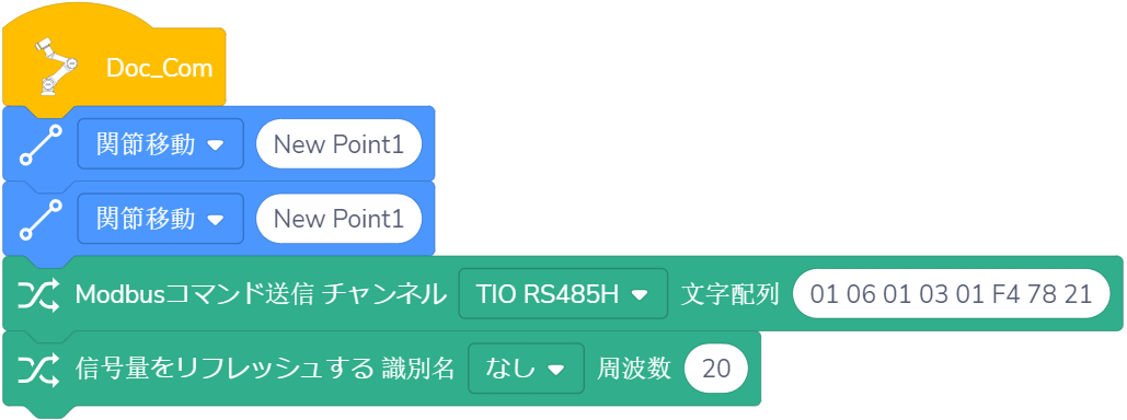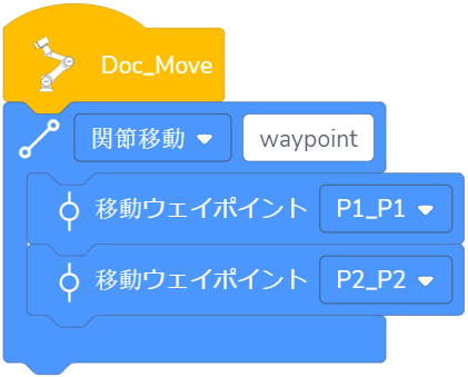 意味: デカルト座標系に記録されたポイントを用いて、関節移動を実行します。