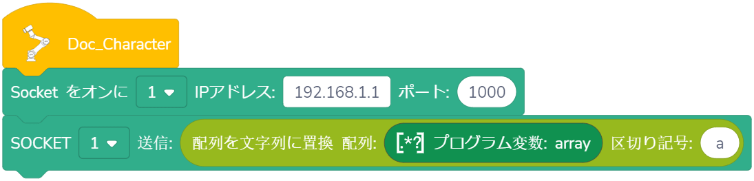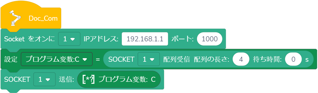 意味:ロボットは、長さが( )の配列変数を受信するまで( )秒の間に動作を停止します。コントローラはデータリクエスト文字列を送信した後、受信待ち状態に入ります。