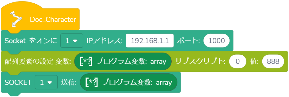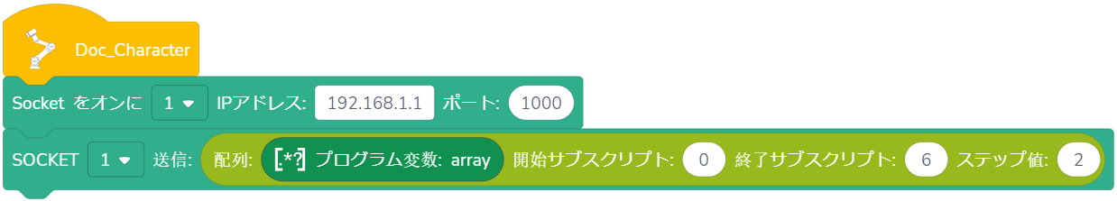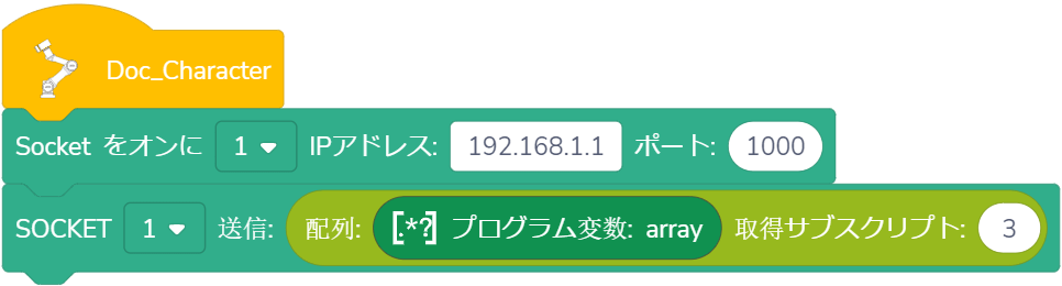 使用法: ドロップダウンリストから指定されたSOCKET IDを選択し、設定した長さ以下の配列が設定された時間内に受信された場合、戻り値は受信した配列になります。欠落した要素はデフォルトで FLOAT_MAX, FLOAT_MAX = 340282346638528859811704183484516925440 です。受信した配列が設定された長さより大きい場合、Appはエラーを報告し、プログラムを停止します。配列が時間内に受信されない場合、戻り値は空の配列となり、Appはエラーを報告しないで、プログラムは継続して実行されます。時間を0に設定すると、最大待機時間65536秒までに待つことになります。この時間を超えると、タイムアウトとして扱われます。