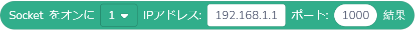 楕円形の白い入力ボックスには、固定値や変数、SOCKETなどで取得した値を入力し、変数にデータを割り当てることができます。