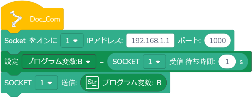 例:SOCKETサーバーに接続し、プログラム変数Bを受信し、結果を返します。