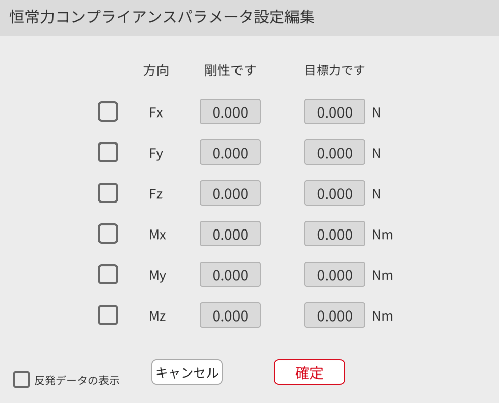 恒常力コンプライアンスパラメータ設定