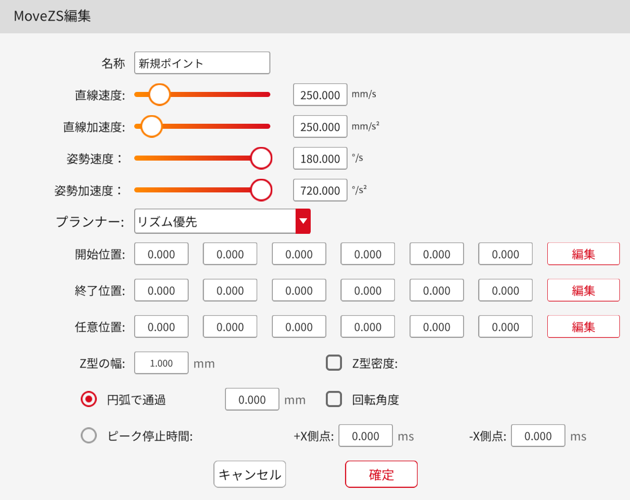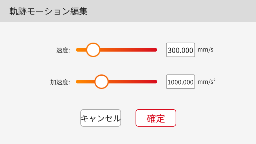ロボットツール端の移動速度と加速度を設定し、直線移動と円弧移動の動きを調整するために使用することができます。それぞれの単位はmm/s、mm/s²です。