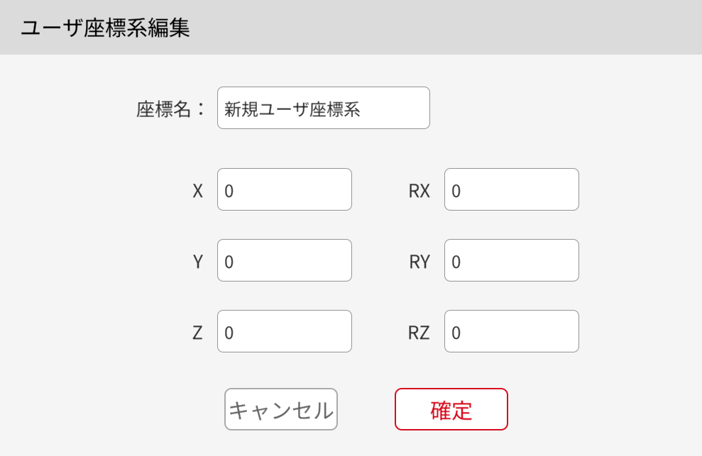 意味:ロボットに現在の姿勢に対する末端の直線移動を行わせるための位置変化量を設定します。位置変化量は現在のユーザー座標系における増分値です。
