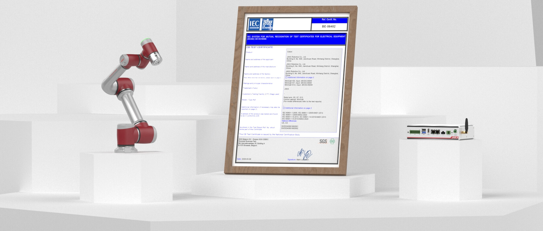 JAKA S series cobots (S5/S7/S12) and MiniCab control cabinet have officially received the IEC 60601 medical safety certification – the global benchmark for medical electrical equipment safety!