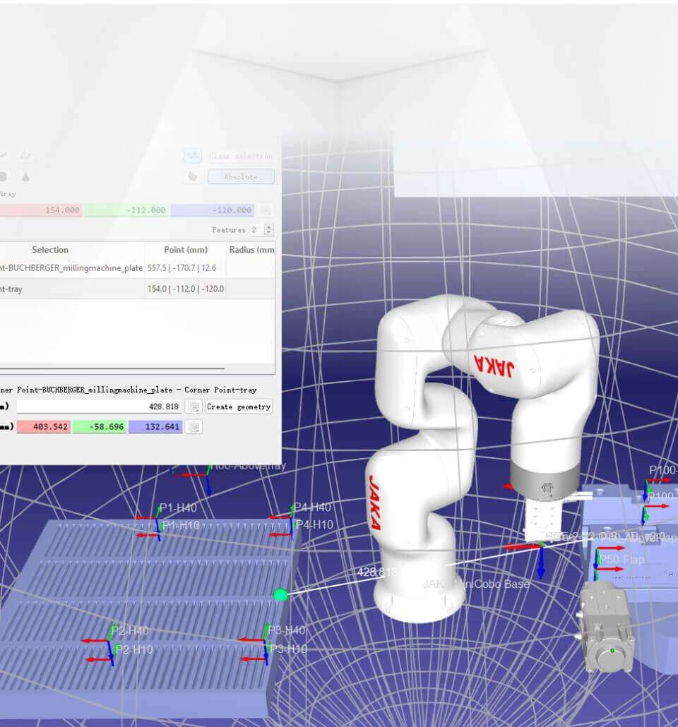 Comprueba fácilmente el alcance del cobot para todas las posiciones de recogida y colocación.