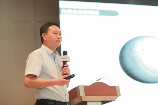 节卡机器人副总裁杨卓致辞欢迎各位合作伙伴、行业专家的到来,并对节卡机器人发展情况、产品系列、服务体系等作简要介绍。