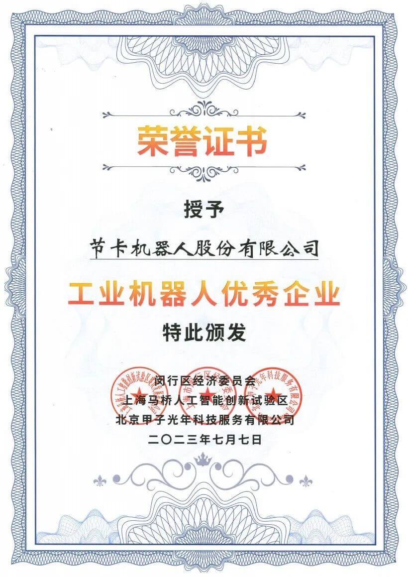 节卡机器人凭借先进的核心技术、丰富的产品体系和应用场景,以及长期积淀的品牌声誉, 获颁“优秀企业”荣誉证书。