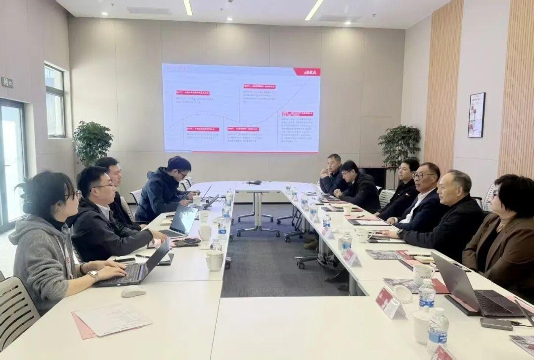 会议伊始,在CEO李明洋的带领下,上电科一行参观了节卡机器人展厅及测试区域。现场不仅展示了 JAKA 全系列产品的核心技术与应用场景,还系统回顾了双方过往的合作历程,为后续深化合作奠定了坚实基础。